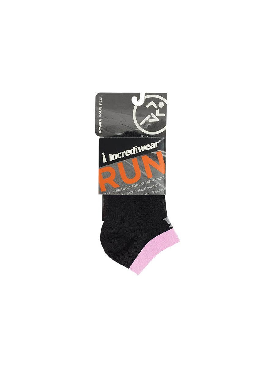 Incrediwear Run Socks to skarpetki regeneracyjne zapewniające wyjątkowy komfort użytkowania podczas aktywności fizycznej. Ich zadaniem jest zapobieganie dolegliwościom bólowym podczas biegów długodystansowych. KRÓJ: za kostkę. Kolor: czarno-różowy.