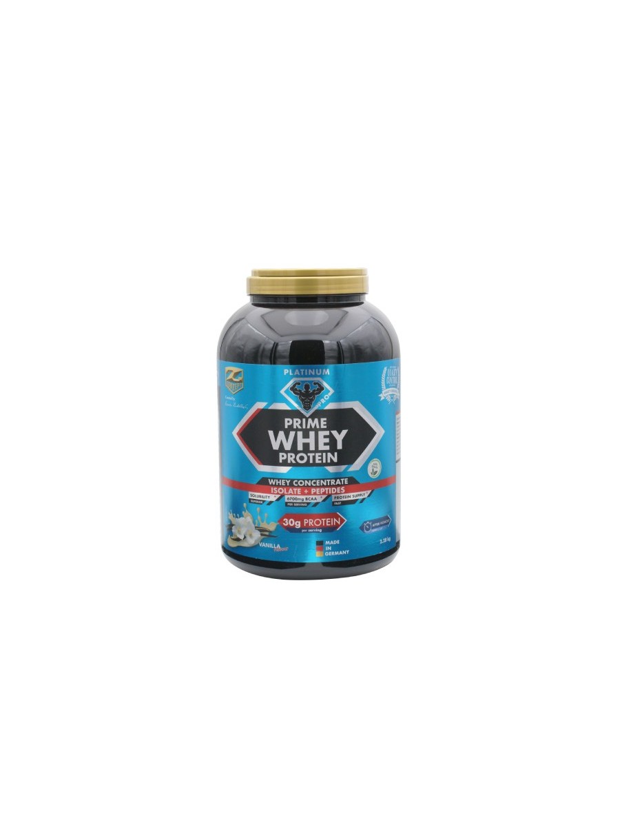 Prime Whey to ulepszona wersja już znanego 100% Whey Protein marki Z-Konzept. Zawiera wyłącznie naturalne słodziki (sukraloza i stewia), ma lepszą wydajność oraz jest jeszcze lepiej rozpuszczalna niż jej poprzednik. Poprzez dodanie hydrolizatu białka serwatki (WPH) i izolatu białka serwatkowego (WPI) została zwiększona szybkość absorpcji i zawartość białka, razem z całkowitą ilością BCAA. Jest to produkt przeznaczony dla sportowców o wysokich osiągach, dlatego też zwiększona została wielkość porcji, która obecnie zawiera do 30 g białka i 6.7 mg BCAA. Prime Whey Protein idealnie nadaje się także jako dodatek do posiłków i napojów. Linia PlatinumPRO jest specjalnie zaprojektowana dla sportowców, którzy dążą do osiągnięcia najlepszych rezultatów i doceniają czystość produktu pod względem biologicznym.
