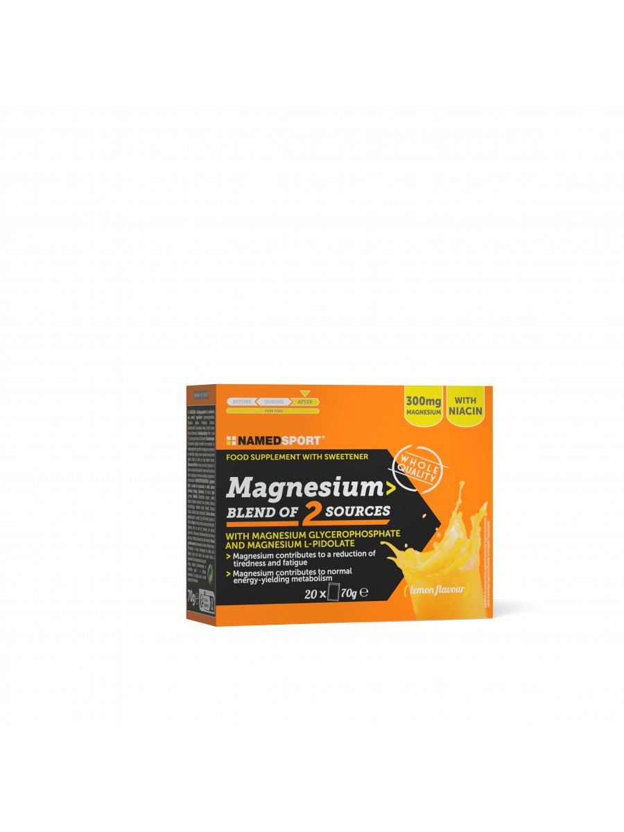 Suplement diety Magnesium 2 Blend Of 2 Sources marki NAMEDSPORT łączy w sobie glicerofosforan magnezu, pidolan magnezu oraz witaminę B3, tworząc łatwo przyswajalną formułę w postaci proszku do rozpuszczania w wodzie. Każda porcja zamknięta jest w wygodnej saszetce, co zapewnia precyzyjne dawkowanie i szybkie przygotowanie napoju.