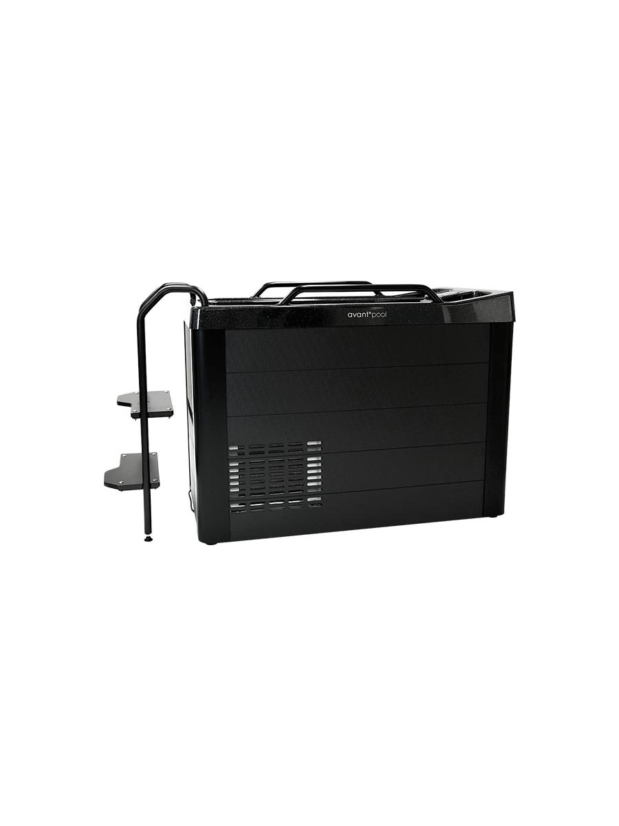 Basen wyposażono w modułowe schodki i poręcze, które można zamontować po bokach lub na końcu, dopasowując układ do dostępnej przestrzeni. W zestawie znajduje się izolowana pokrywa, a wbudowany system filtracji z ciągłą dezynfekcją UV dba o czystość i świeżość wody.