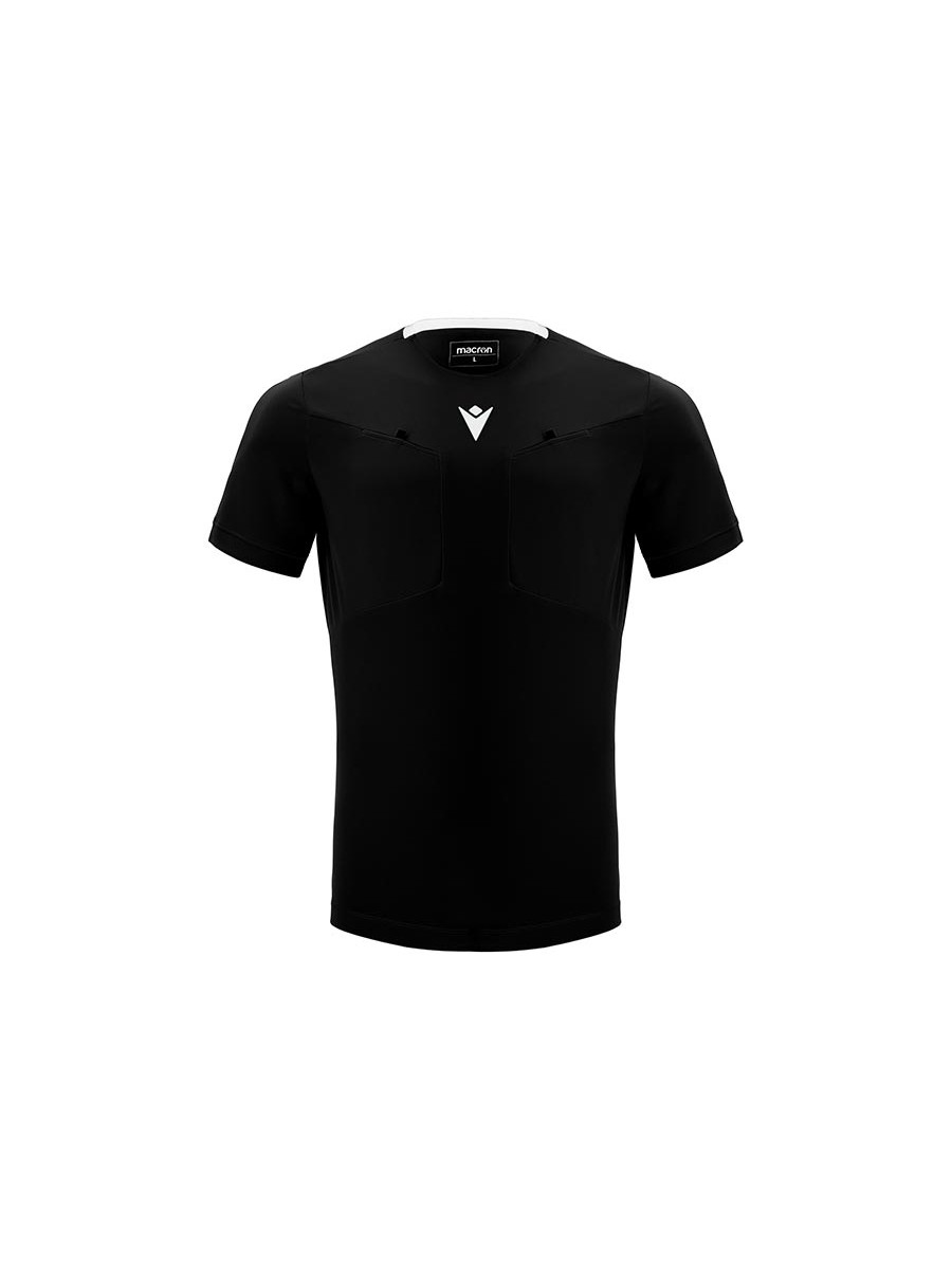 Produkt posiada okrągły dekolt wykończony dzianinowym kołnierzem z tyłu. Na ramionach umieszczono siateczkowe wstawki, które zapewniają oddychalność i odprowadzenie wilgoci. Dodatkowo, koszulka sędziowska Macron wyposażona została w podwójną kieszeń zapinaną na rzep. Jej ergonomiczny kształt ułatwia przechowywanie i wyjmowanie kart.