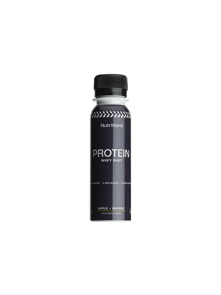 Napój proteinowy zawierający 20 g pełnowartościowego białka serwatkowego, zamknięty w poręcznym, 100-mililitrowym szocie.