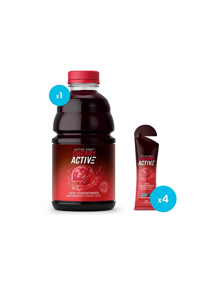 Cherry Active® to 100% koncentrat soku z cierpkiej wiśni Montmorency, wspierający regenerację mięśni, wydolność organizmu oraz jakość snu. Produkt jest odpowiedni dla wegan i wegetarian, a dzięki certyfikatom Informed-Sport i WADA może być bezpiecznie stosowany przez sportowców. Badania potwierdzają jego działanie w przyspieszaniu regeneracji, zmniejszaniu bolesności mięśni oraz poprawie zdolności wysiłkowych, dlatego często wybierają go zawodnicy dyscyplin wytrzymałościowych i zespołowych.