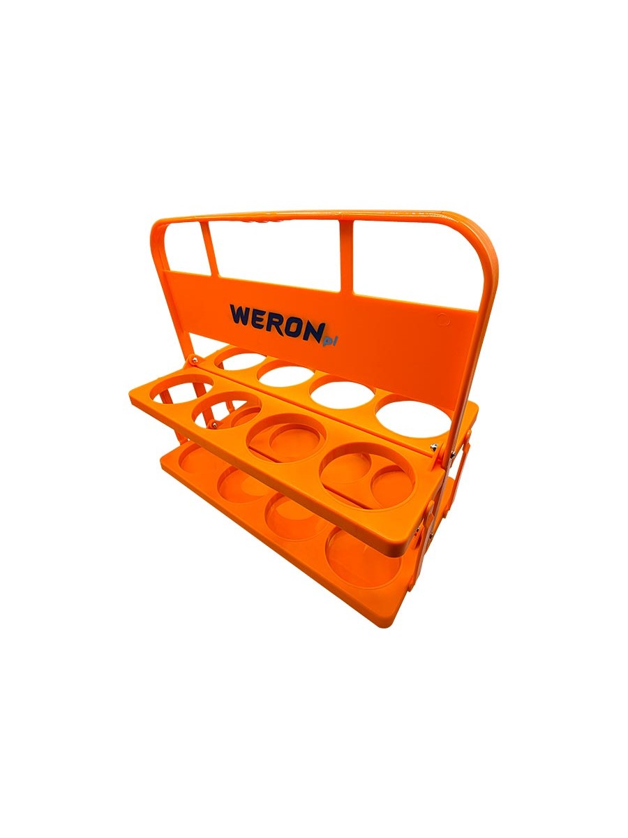 Solidny koszyk mieszczący 8 bidonów lub butelek. Wygodny sposób na sprawne przenoszenie oraz organizację napojów. Wytrzymała, stalowa rama w połączeniu z poręcznym uchwytem gwarantuje komfort i bezpieczeństwo użytkowania, nawet gdy jest całkowicie załadowany.