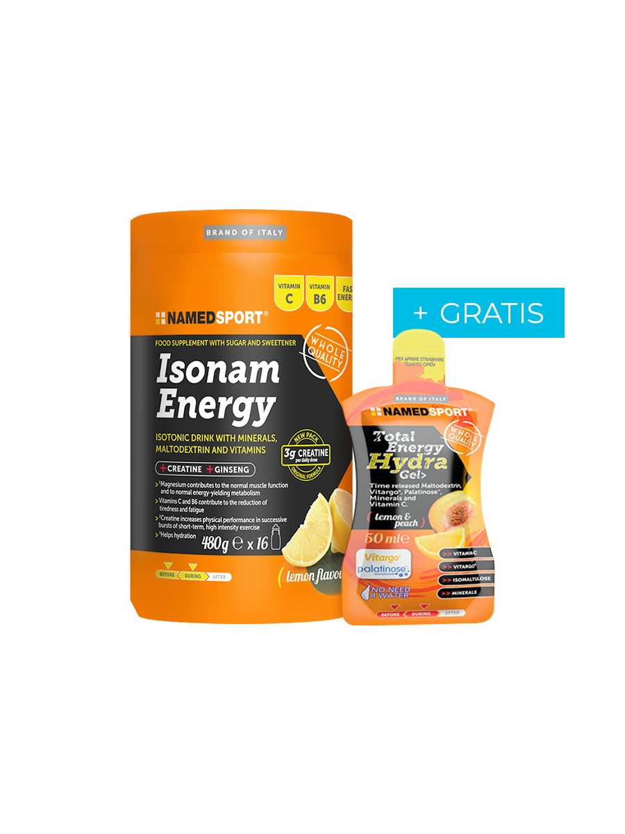 Izotonik w proszku do rozpuszczenia w wodzie o smaku cytryny. Doskonale nawadnia i dostarcza niezbędnych elektrolitów podczas wysiłku fizycznego. Isonam Energy to produkt dla osób profesjonalnie uprawiających sport oraz amatorów w dyscyplinach takich jak: bieganie, kolarstwo, czy sporty zespołowe. Formuła napoju wzbogacona została o składniki zwiększające wydolność oraz ekstrakt z żeń-szenia, który dodaje energii podczas treningu. Wyrazisty, kwaskowy smak cytryny dodatkowo orzeźwia i pobudza do działania podczas długich sesji treningowych. Jedno opakowanie produktu wystarcza na przygotowanie 16 porcji napoju.